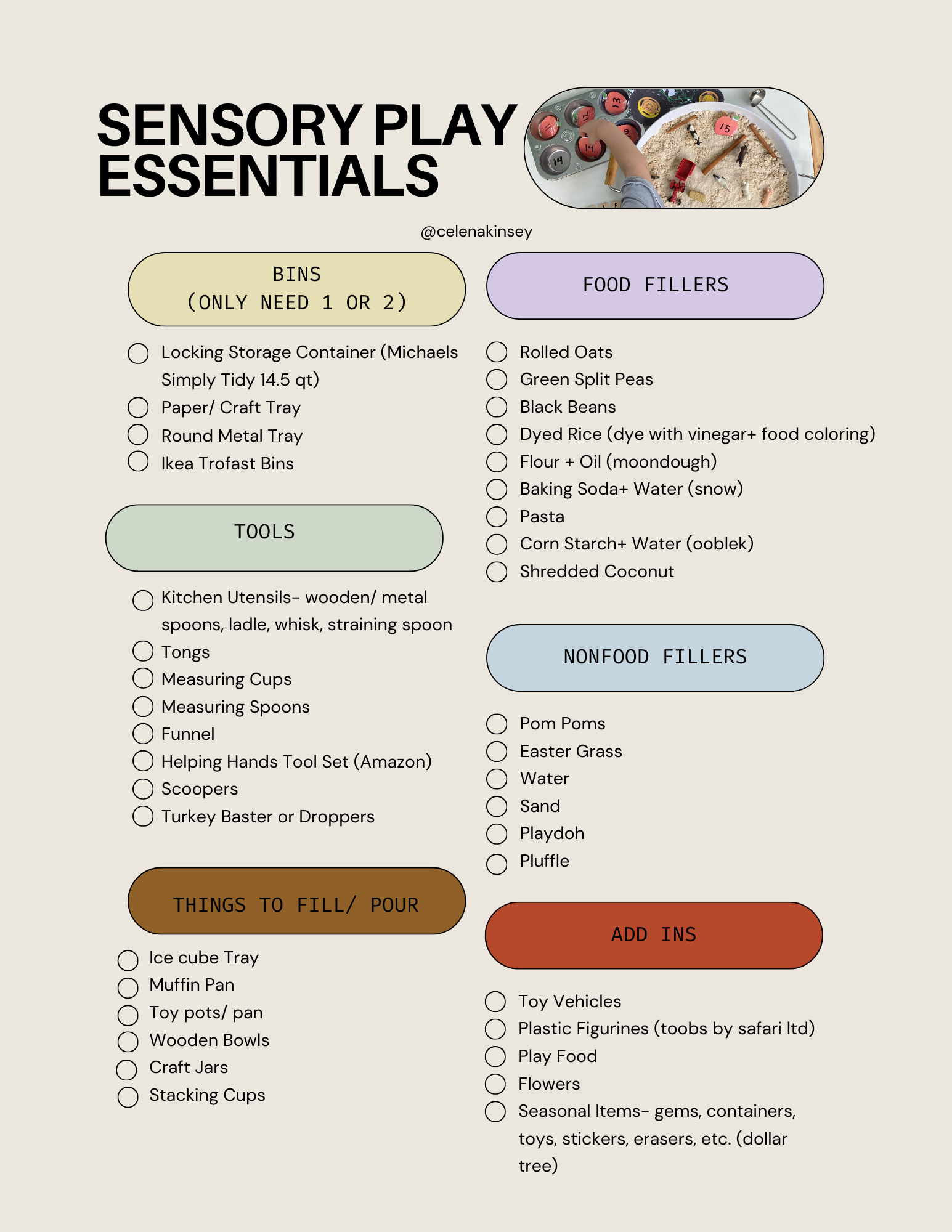 Here's a quick checklist of things to get when you're starting your sensory play journey!